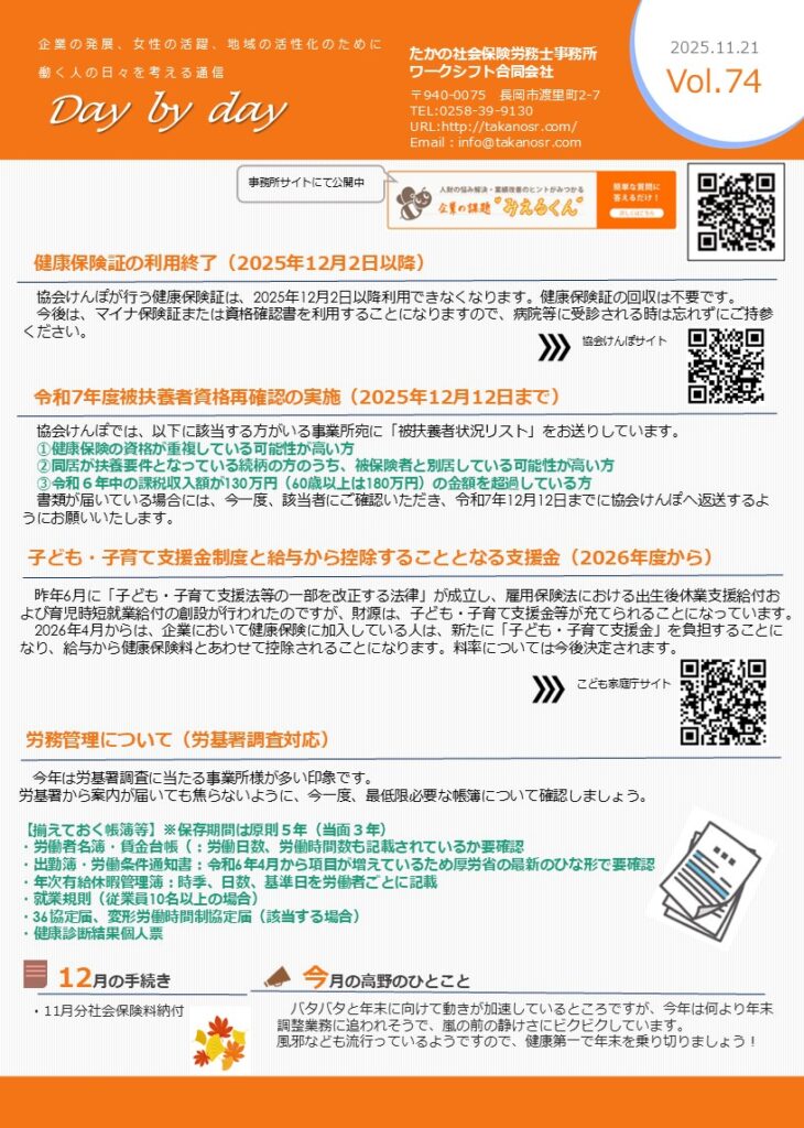 Vol.74 2025.11.21 健康保険証の利用終了(2025年12月2日以降)