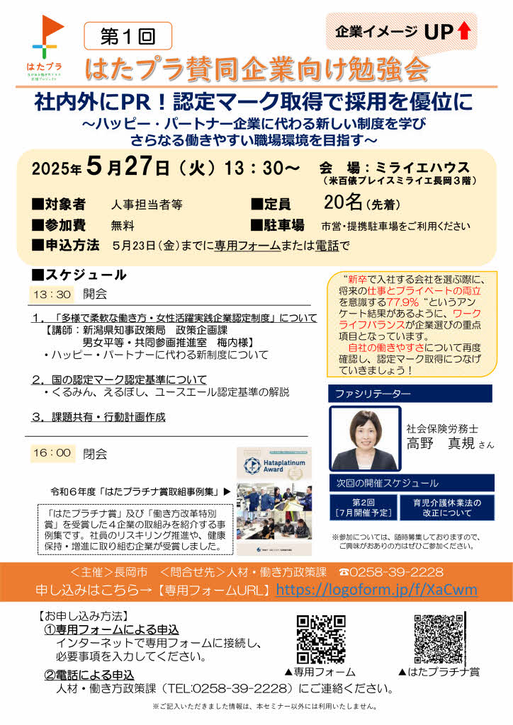 長岡市はたプラ勉強会 社内外にPR!認定マーク取得で採用を優位に